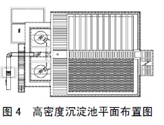 高密度沉淀池是將混合、絮凝、沉淀、污泥濃縮過程綜合于一個構筑物中的綜合處理工藝,各部分相互牽制、相互影響。在混合反應區內靠攪拌器的的提升作用完成泥渣、藥劑、原水的快速凝聚反應,然后經葉輪提升至推流反應區進行慢速凝聚反應,以結成較大的絮凝體,再進入斜管沉淀區進行分離。澄清水通過集水槽收集進入后續處理構筑物,沉淀物通過刮泥機刮到泥斗中,經容積式循環泵提升將部分污泥送至反應池進水管,剩余污泥排放。