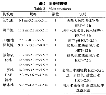 工程設計流量為1 500 m3/d,24 h運行,主要設計參數列于表1。