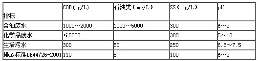 該項目含油廢水主要包括:船舶壓艙水、船舶機艙油水、油貯罐洗罐廢水、初期雨水等部分。根據環評報告含油廢水日產量為873m3/d,石油類含量為2480mg/L,COD含量為4880mg/L。