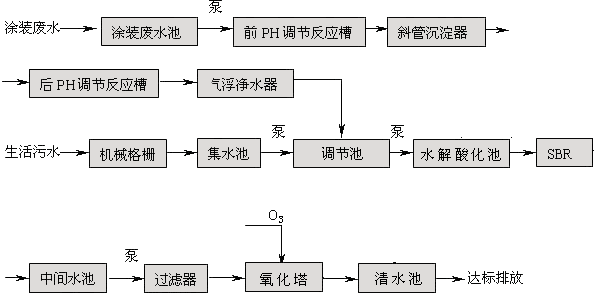脫脂、磷化、表調、電泳、噴漆廢液及清洗排水、廠區生活污水