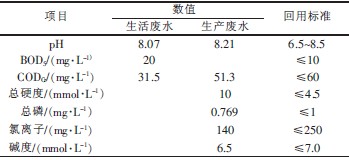 表1 進水水質及回用標準
