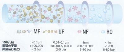 超濾(Ultrafiltration)技術是一種膜濾法。其原理是在常溫下以一定壓力和流量,利用不對稱微孔結構和半透膜介質,以膜兩側的壓差為動力的一種新型膜分離技術。超濾膜特有的0.01—0.1 u m孔徑可有效阻留細菌,大多數病毒,膠體以及淤泥。從而達到分離、分級、純化、濃縮目的。