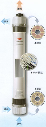 采用親水性強的H—PVDF材料,制成獨特的雙皮層結構膜絲,具有超強的耐化學性,足以抵抗強酸強堿的侵蝕;機械強度高,不易斷裂,適應頻繁的氣擦洗和化學清洗,延長了膜絲服務壽命。