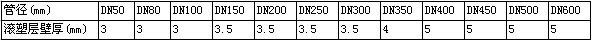 表2 熱滾塑鋼管滾塑層壁厚選擇表
