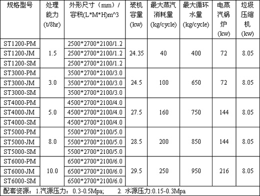 表中電蒸汽鍋爐及垃圾壓縮機為選配件