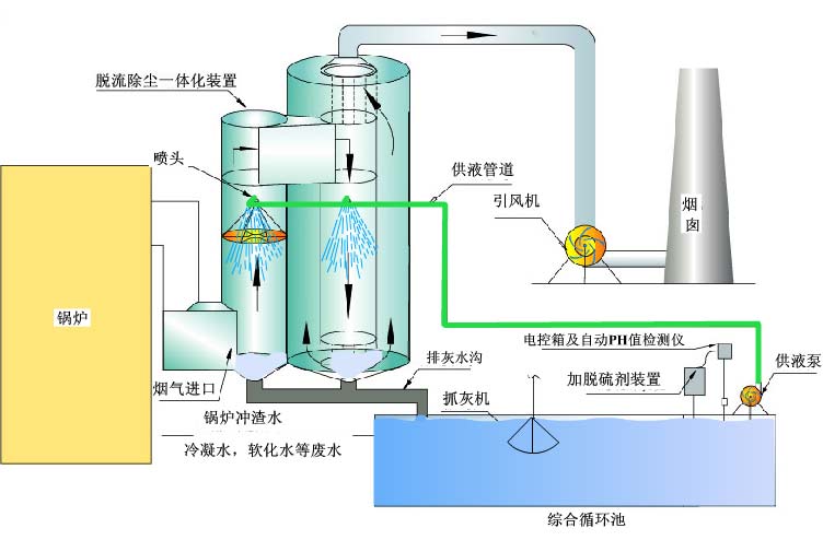 關鍵詞:雙塔組合,脫硫除塵,一體化