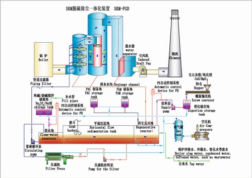 來源: 閱讀:2968 更新時間:2011-08-10 09:31脫硫除塵一體化工藝系統即脫硫與除塵同步完成,故吸收塔為該系統的關鍵設備。SKM脫硫除塵一體化設備采用北京青山綠野環保科技有限公司多項專利技術,含塵煙氣在SKM脫硫除塵塔內通過旋流板的加速和旋轉,煙塵與經過霧化的吸收液發生碰撞、附著、凝聚、離心分離等綜合性的作用,被甩到塔壁,隨塔壁水膜流向塔底。除塵效率可達99 %以上。在SKM高效脫硫除塵塔中煙氣與布置在旋流板上方的液霧充分接觸的過程中被降溫, SO2與吸收液發生劇烈的化學反應,傳質吸收,脫硫效率可達到98%以上。最終系統可實現煙氣排放標準優于《北京市大氣污染物綜合排放標準》(DB11/139-2007)煙塵濃度<10 mg/Nm3,SO2濃度<10 mg/m3。