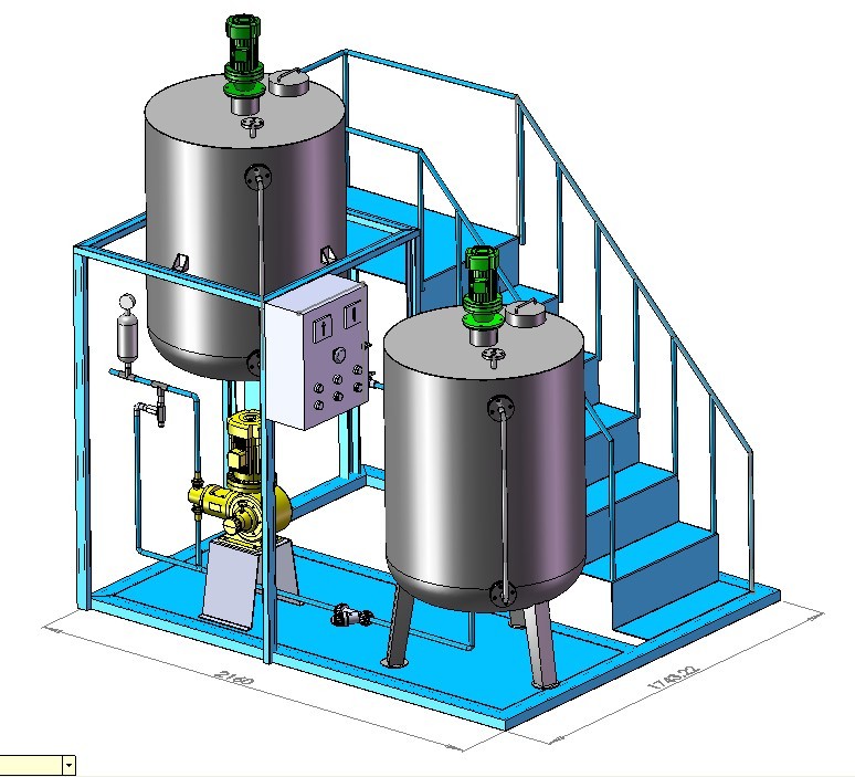 本裝置主要包括藥液溶配系統、計量投加系統和控制系統等三部分。