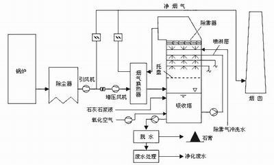 石灰石儲運系統;石灰石漿液制備及供給系統;煙氣系統;SO2 吸收系統;石膏脫水系統;石膏儲運系統;漿液排放系統;工藝水系統;壓縮空氣系統;廢水處理系統;氧化空氣系統;電控制系統