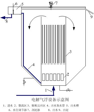 電解氣浮是利用不溶性極板在直流電的作用下,直接將廢水進行電解.電解過程中,陽極和陰極發生電子遷移,在陽極產生陽極陰極產生氫氣,氣體形成的微小氣泡很小,可以將廢水中的污染顆粒或者混凝后形成的絮凝體在黏附其上得以上浮,形成泡沫污泥層,然后將泡沫污泥層刮掉,實現污泥分離,污染得到去除。