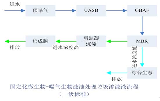 垃圾滲濾液氨氮含量很高,抑制了傳統活性污泥法中微生物活性,從而大大降低活性污泥系統對污染物的去除效率。而北京大學環境工程研究所和深圳蓋雅環境科技有限公司共同開發的固定化微生物-曝氣生物濾池技術(GAIA-BAF),解決了這一難題,在生物脫氮方面,達到了國際領先水平。通過固定化微生物-曝氣生物濾池處理的廢水,氨氮濃度在20mg/L以下,COD也大幅度下降。此技術已經成功用于深圳龍崗中心城垃圾焚燒發電廠滲濾液處理和深圳布吉甘坑垃圾滲濾液處理工程,其中布吉工程獲得國家環保局國家重點環境保護實用技術示范工程。