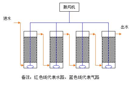 中試裝置規模600m3/d。包括Gaia-BAF池四座(有效尺寸為L ×B×H=4.875m×4m×1.2m,有效容積93.6 m3 ,廢水停留時間3.74h),串連運行。為保證進水COD濃度,取水取自沙田污水處理廠沉淀池前端,即未進行沉淀的河水。