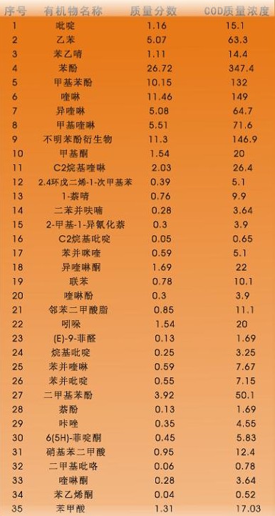 3、難降解有機物:廢水中的難降解有機物主要有喹啉、異喹啉、甲基喹啉、吲哚、吡啶、聯苯、咪唑、咔唑、烷基吡啶,這些難以生化。