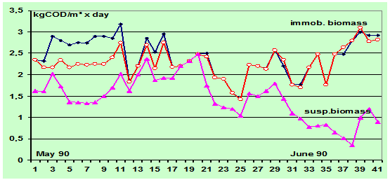 兩個反應器中均投放了從市政污水處理廠運送的污泥,經過5個月的接種馴化后通入紙漿廠的廢水。在此后的8個月兩個試驗裝置最初是同時運行,然后使用活性污泥法的反應罐作為LEVAPOR生物膜法厭氧反應器的前置水解酸化池繼續運行。