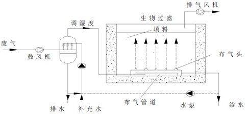 生物過濾是使收集到的廢氣在適宜的條件下通過長滿微生物的固體載體(填料),氣味物質先被填料吸收,然后被填料上的微生物氧化分解,完成廢氣的除臭過程。