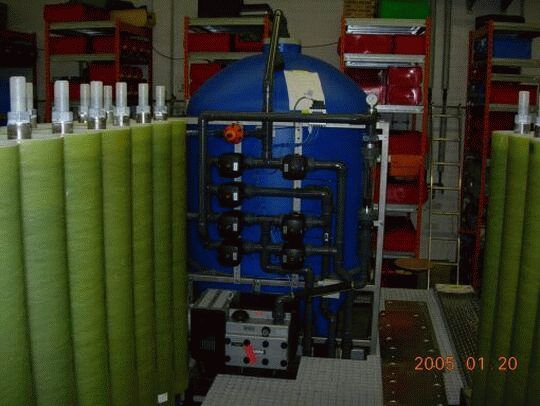 大辛DTRO系統日處理滲濾液230噸,兩級反滲透,安裝在200㎡的車間內,出水達到GB16889-1997中的一級排放限值。