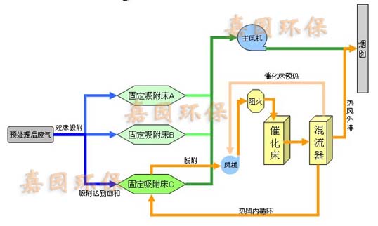 4.在固定吸附床、催化燃燒床的進氣管路設置濾塵阻火器。