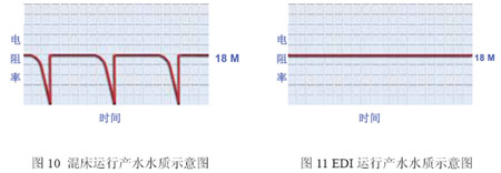 如圖11所示,EDI運行過程為連續過程,EDI 在運行過程中將能持續不斷地提供 10~18Mohm•cm的產水,在運行過程中,幾乎不需要人工干預,沒有復雜的操作,并不需要化學藥品的再生。
