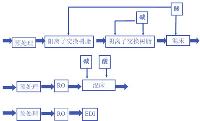 圖1描述了RO,EDI取代傳統離子交換工藝的過程。