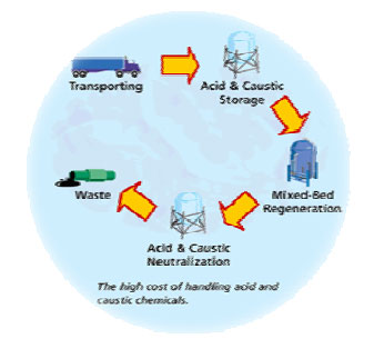 –無需再生化學品的再生;不需要中和池及中和的酸堿;地面和高空作業能夠極大地減少;所有的水處理系統操作都能夠在控制室內完成
