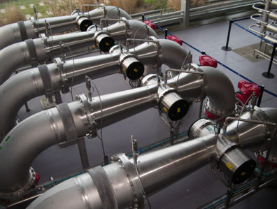 位于德國中部的Essen自來水廠,日處理量20萬立方米。系統采用單一紫外線消毒工藝,整套系統由四臺大管徑反應器并聯組合而成,由于水源水質較高,整套設備沒有配套石英套管的清洗系統。經過博生紫外線消毒系統處理的自來水廠,可以達到直飲水標準,并滿足當地DVGW認證標準。