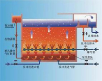 采用氣水平行上向流,使空間過濾能被更好的運用,空氣能將固態物質帶人濾床深處,在濾池中能得到高負荷、均勻的固體物質,從而延長了反沖洗周期,減少清洗時間和清洗時用的氣水量。