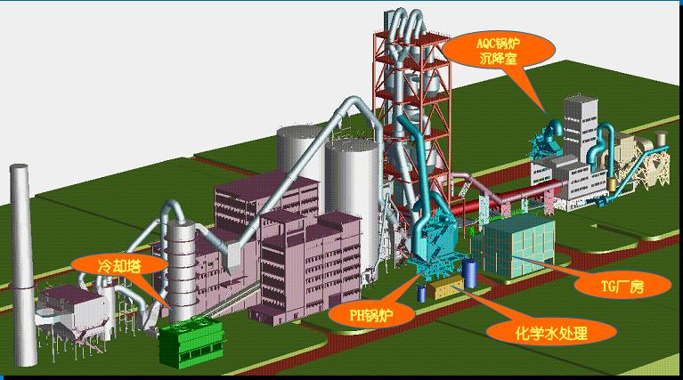 1.余熱鍋爐,余熱鍋爐包括窯尾PH鍋爐和窯頭AQC鍋爐,余熱鍋爐回收水泥窯頭和窯尾的廢氣余熱產生過熱蒸汽或飽和蒸汽。