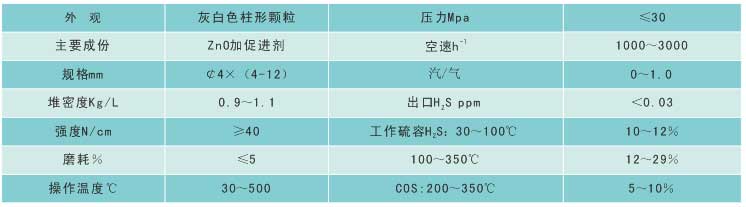 1、脫硫精度高。進口H2S 8000~15000ppm時,出口H2S<0.03ppm,在常溫下對COS有一定的脫除能力。