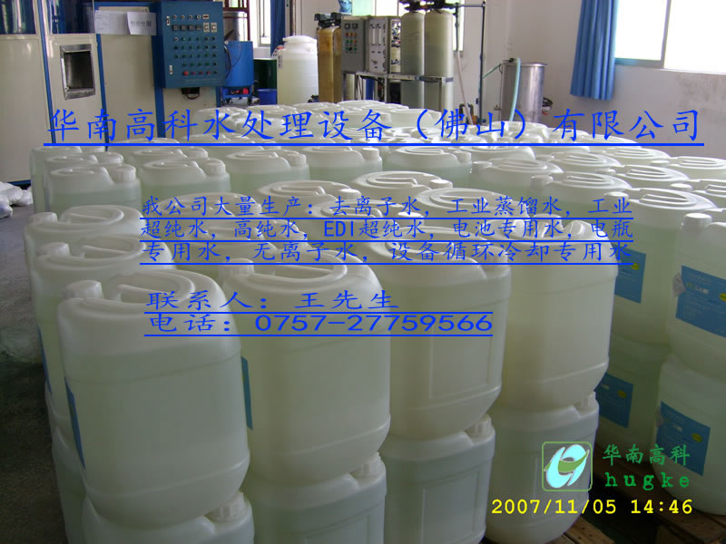 華南高科水處理設備(佛山)有限公司是一家專業從事水處理設備相關產品生產,銷售的企業。為了滿足廣大用戶對小量高純水的需求,利用公司設備,根據用戶對水質及用量要求,定量生產、銷售工業蒸餾水,工業去離子水(優于蒸餾水),高純水。水質最高可達到18兆歐姆。能充分滿足小型實驗室用水,電池用水,清洗用水,醫藥用水,電子用水等不同行業的需要