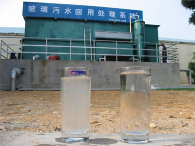 玻璃加工磨邊及洗滌消耗大量水資源,同時污水排放會對水體產生污染,玻璃粉長期排入河體會造成水體植物呼吸系統破壞。污水回用可以節約可觀水費及排污費,相對提高企業的競爭力。首先可以避免管道堵塞,簡單回用不對該廢水進行處理或者只是進行簡單處理,雖然可以節約一定成本,但由于廢水中含有大量玻璃粉、油類及COD,循環利用使產品表面有瑕疵,影響產品質量,并且會造成管道結垢;同時, 降低企業用水成本與環保的壓力: