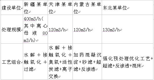 由于經以上幾種工藝處理后,水中的鹽分并沒有得到有效的去除,因此即便技術可行,其處理后的水也只能作為初級回用水(如作為循環冷卻水的補充水等)回用于生產。
