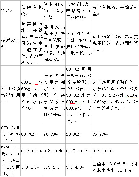 三、PVC離心母液回收的幾種工藝組合比較及發展趨勢