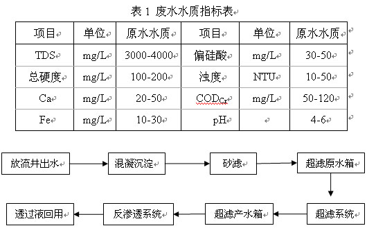 試驗的廢水為經物化、多級生化處理后的排放水,造紙廢水含有較多懸浮物(包括無機物和有機物),濁度高,硬度高,鐵含量高,水質變化較大,水質指標見表1。為減輕膜污染,減少清洗難度和頻率,應加強膜分離前的預處理,宜增加絮凝沉淀和常規過濾等預處理。本項目主要分成三部分:預處理(混凝沉淀、砂濾)、超濾、反滲透。