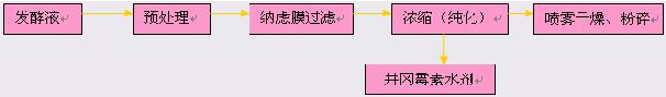 井岡霉素是一種高效低毒低殘留的生物農藥,廣泛應用于水稻病蟲害防治。 在井岡霉素的生產中,通過發酵、分離、濃縮過程達到所需的井岡霉素濃度。發酵法生產的井岡霉素原液中含有4%的生物殘渣、一定鹽分和約0.1~0.2%的抗生素。在濃縮工藝中,傳統用蒸發器的工藝進行脫水濃縮,因此造成具大的能源消耗。我公司研究出用納濾膜回收和純化井岡霉素,直接在常溫下將其濃縮至5%以上