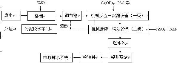 依據株洲市品和鋅材料有限公司的建設項目環境影響報告表中的環保部門對廢水水質的檢測數據以及株洲市城市排水有限公司水質檢測中心檢測報告(報告編號 070401)的水質特點,經綜合分析,將廢水處理工藝確定為兩段中和沉淀為主導的處理工藝。