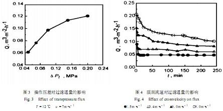 2.通過對工藝條件的研究,認為較為合適的操作參數為:操作壓差在0.2MPa以下,膜面流速宜選在57m/s,溫度應在35℃左右;