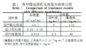 表1給出的無機膜與有機膜對冷軋乳化液的處理結果,可以看出,本實驗采用的氧化鋯膜在處理乳化液廢水的過程中無論是過濾通量還是滲透液油含量均具有較好的效果。