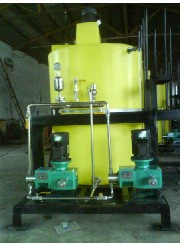 加藥裝置主要用于電廠的給水、爐水、循環水、廢水等處理,也可用于石油、化工、環保、供水系統等行業。單元組合式加藥裝置,主要有溶液箱、計量泵、過濾器、安全閥、止回閥、脈沖阻尼器、水位表、控制柜等組成一體化安裝在一個底座上。
