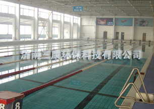 反應罐容積(m3)=循環水流量(m3/h)×旁流水百分比(%)×反應時間(h)。例如380m3 游泳池池水循環周期采用6h,循環水流量為63m3/h,旁流水流量為循環水流量的25%,接觸時間4min,則反應罐最小容積為63×0.25×0.067=1.05m3。