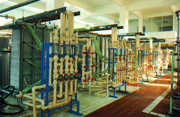 電滲析是將水置于直流電場中,使水中的離子發生定向遷移,同時利用陽、陰離子交換膜對陽陰離子的選擇透過性,使離子遷移,達到離子與水分離的目的。作為預脫鹽的手段置放于離子交換系統之前,可延長離子交換系統的再生周期。本設備特點為:其能耗低、產水量大、脫鹽率高、穩定性強。