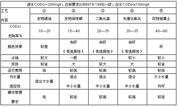 印染廢水經過系列處理,最后余下的污染物很難降解,一般深度處理工藝CODcr去除率<30%。