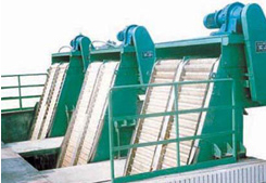 結構及工作原理:該設備是由ABS工程塑料、尼龍或不銹鋼制成的特殊型耙齒,按一定的排列次序裝配在耙齒軸上形 成封閉式耙齒鏈,其下部安裝在進渠水體中。當傳動系統帶動鏈輪作勻速定向旋轉時,整個耙齒鏈便自下 而上運動,并攜帶固體雜物從液體中分離出來,流體則通過耙齒的柵隙流過去,整個工作狀態連續進行。由于耙齒的特殊結構形狀,使耙齒鏈攜帶雜物到達上端轉向運動時,前、后排耙齒之間產生相對 自清運動,促使雜物依靠重力脫落。