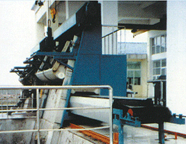 結構及工作原理:GSYS型移動式格柵除污機井下部份,耙斗升降及閉合裝置與GSGS型固定式格柵除污機相同,水上部份機架采用鋼輪設置在平行的鋼軌上,通過行走機構將機架與傳動部份進行水平移動。工作時,機架在格柵井的一端先行工作,驅動卷揚機構帶動耙斗沿水下并列組合的柵條自動定位,并下行至井底,當第一寬度完成截污處理后,行走機構將機架移至第二工作點,進行截污,直至完成整個井寬。