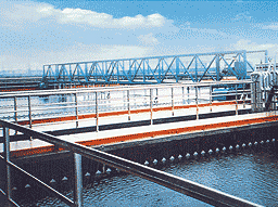 5、主梁結構合理,對于大跨度平流沉淀池吸泥機采用桁架式或"L"型組合梁;中、小跨度的斜管池吸泥機采用單或雙管式梁、型鋼梁;特別是斜管沉淀池水中吸輸泥管既為通道又作承載構件。因而用料省且制造維護方便。