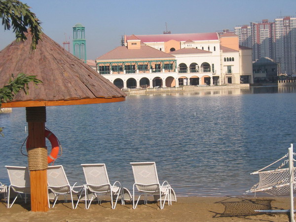 我公司采用“HDP景觀水直接凈化技術”,快速完成施工,設備投入使用后,水面漂浮大量泡沫,表明污染十分嚴重,兩星期后水質逐步改善,泡沫之間消失,黑色漸漸褪去。一個月以后,透明度達到1.5米以上,碧藍的湖水,配以人造沙灘,讓人以為來到美麗的海邊。