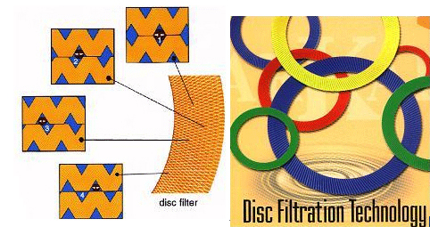 ARKAL 公司是疊片過濾術的創始者,薄薄的特定顏色的塑料疊片兩邊刻有大量一定微米尺寸的溝槽。一串同種模式的疊片疊壓在特別設計的內撐上。通過彈簧和液體壓力壓緊時,疊片之間的溝槽交叉,從而制造出擁有一系列獨特過濾通道的深層過濾單元,這個過濾單元裝在一個耐壓耐腐蝕的濾筒中形成過濾器。