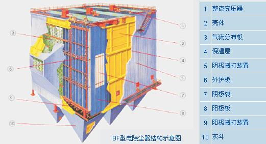 BF型電除塵器的技術特點就是利用計算機進行煙塵特性分析(工況下有效趨極速度的計算)、選型,利用選型參數再進行強度和重量的計算,這樣就可以為客戶提供經濟合理、技術先進、性能可靠的產品。這也是國際上先進的選型技術。另外,陰陽極極配設計也是選型的重要組成。BF型電除塵器極配設計是根據工藝、煙塵特性、性能指標來選擇陰陽極極距,陰極線線距,陽極板型式和陰極線型式的優化組合,使組成的電場針對性強、合理匹配的工作電場,確保長期的運行性能。