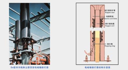 電磁錘振打器由一個繞制在高強度線圈骨架上的電磁線圈組成,線圈骨架裝配在一個鋼制的保護罩內,以便能安全地在戶外使用。其通過機械振打作用清除沉積在電除塵器極板和極線上的粉塵。
