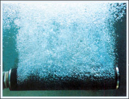 間歇操作是一種氧用量高和氣流量變化范圍大的特殊形式。當通氣時,膜片微孔連續冒出 1~3mm 細氣泡,增加了氣泡與污水的接觸的面積,這大大提高了氧轉移率;當氣流停止時,膜片收縮,“ 1 ”型微孔封閉,支撐管上的未打孔止回閥區膜片封閉供氣孔。這雙重止回設計可以有效阻止水或污水進入曝氣器及曝氣管路系統。