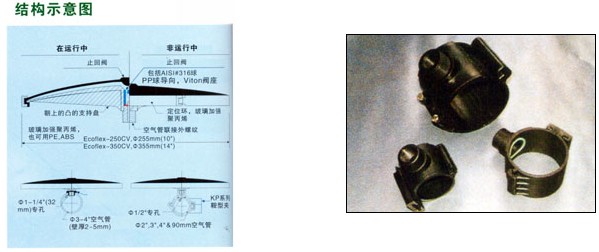 上并且膜片上開有很多“ 1 ” 形的微孔,橡膠膜片的周邊由夾環固定。膜片中央的單向閥起安全保護作用,可有效防止污泥進入管道而堵塞整個系統。